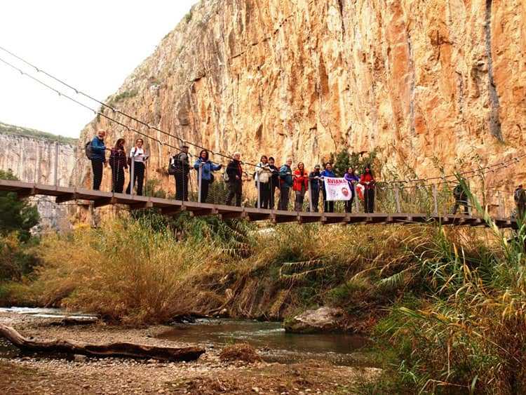 En esta soleada mañana de diciembre, 50 socios y amigos de Aviana realizamos una excelente ruta de senderismo en Chulilla (Valencia). Esta localidad se encuentra en la Comarca de los Serranos en un increíble entorno, donde el curso del río Turia  a moldeado el paisaje formando los Calderones, catalogados de Paraje Natural Municipal.