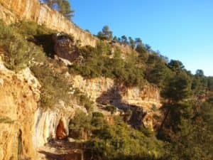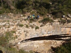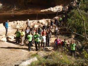 El trayecto dibujó un ocho sobre el terreno, recorriendo los barrancos del Gatillo en primer lugar y el de la Carrasca a continuación, pudiendo contemplar los impresionantes abrigos naturales que la erosión ha construido sobre la piedra caliza en dichos barrancos. En ambos trayectos, debido a la exigencia del terreno, se sorteó algunos tramos entretenidos que ralentizaron la marcha debido al numeroso grupo.
