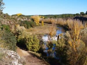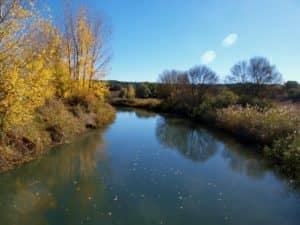 El otoño con el ocre como color característico, unido al sonido del agua y a un sol radiante nos acompañó toda la mañana y nos animó a tomar numerosas fotos. A mediodía, hicimos un descanso para comer, en el parque “Hondo del Río”, de titularidad municipal. Allí hay una población de ocas y patos que nos acompañaron durante nuestro descanso.