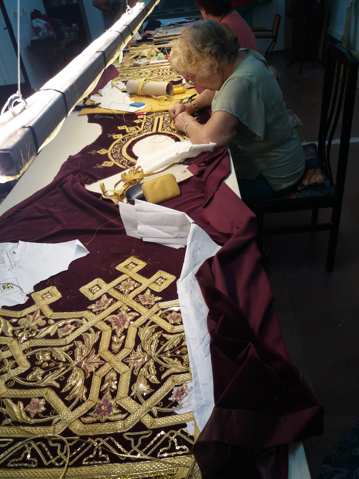 Algun@s participaban con una cierta experiencia de arte, toda su vida habían compaginado el trabajo diario con el dibujo y la pintura de cuadros junto a la realización de manualidades con diversos materiales, otr@s tenían idea de coser o incluso de hacer bordados y algun@s experiencia de trajes especiales. Cada un@ aportaba su conocimiento a una tarea común que después de unos años, en los que se cruzó el “quedateencasa” de una dolorosa pandemia que paralizó no solo su trabajo sino el mundo entero, ha dado sus frutos en una bonita túnica que tiene el doble valor del esfuerzo en equipo y la ilusión que han puesto todos en realizarla.