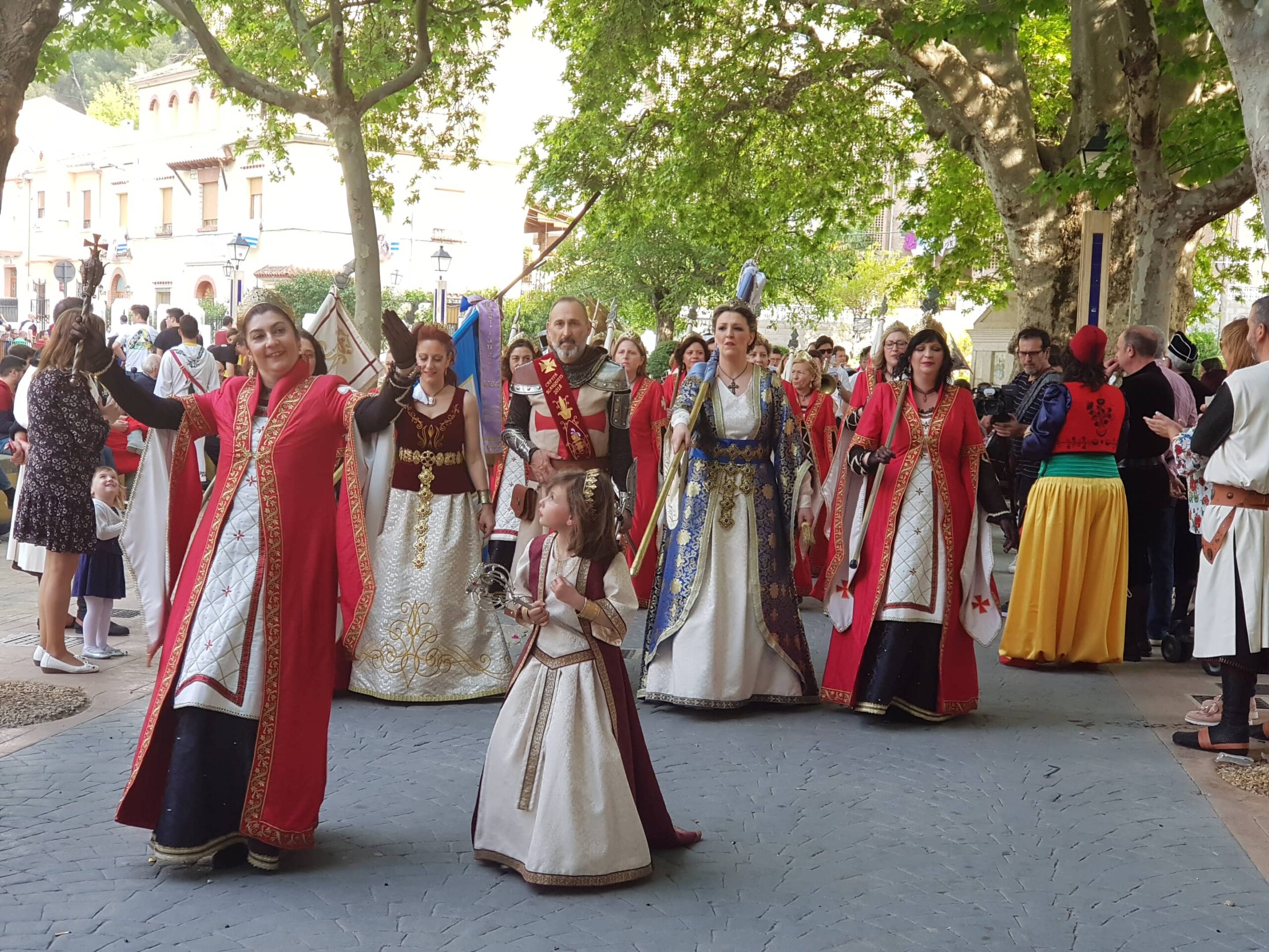 Como marca la tradición, el primer disparo de arcabuz anunciador del traslado de la Virgen de Gràcia lo realizó el capitán de la comparsa de Blanquets. Tras los arcabuceros iniciaron la subida al santuario las escuadras de las distintas comparsas – Blanquets, Blavets, Estudiantes, Maseros, Moros Tariks, Moros Vells y Moros Nous. La imagen de Nuestra Señora de Grácia salió del templo parroquial escoltada por la escuadra oficial de la comparsa de Moros Nous y ya en la plaza de España la «Masa Coral» de la localidad interpretó en la plaza de España, el «Canto de despedida», antes de abandonar la Patrona el casco urbano.
