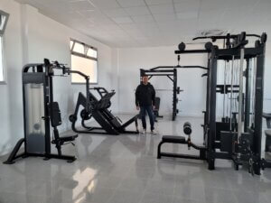 El nuevo gimnasio, de planta única, cuenta con dos salas: una para musculación, con una decena de máquinas, y otra polivalente, con espacio para clases colectivas. También dispone de almacén, vestuarios y aseos, tanto femeninos como masculinos. El edificio se ubica en la parcela lateral al frontón y el pabellón cubierto. La inversión se financió con la ayuda de la Conselleria de Educación y Deporte de la Generalitat Valenciana, dentro del plan de Mejora de Instalaciones Deportivas y alcanzó los 337.761,31 euros.