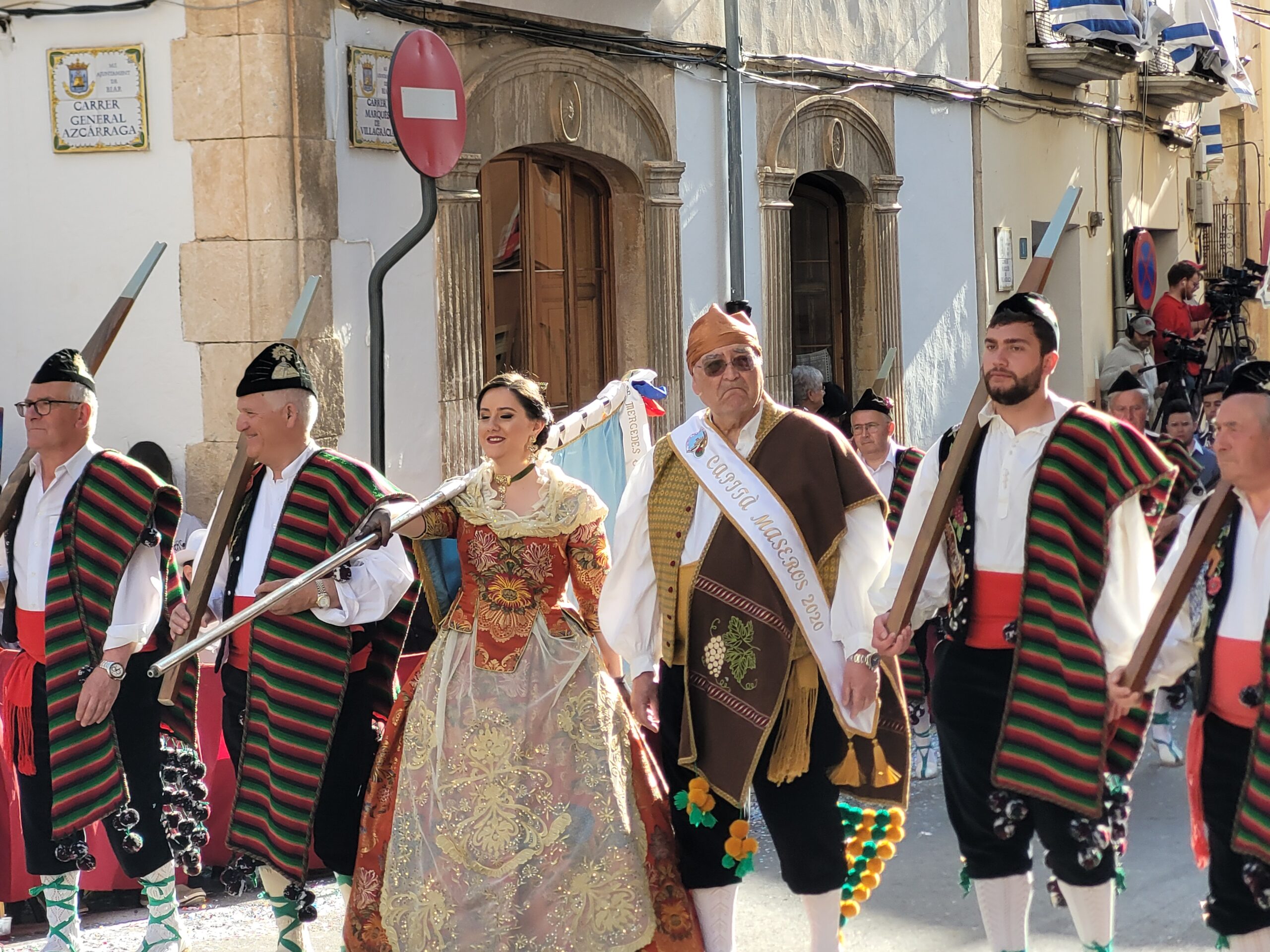 Tras la comparsa de Blanquets desfilaron Blavets, Estudiants y Maseros. La marcha mora llegó con las tres comparsas del bando de la media luna; Moros Vells, Tariks y Moros Nous, que cerraron el primer desfile de las celebraciones patronales.