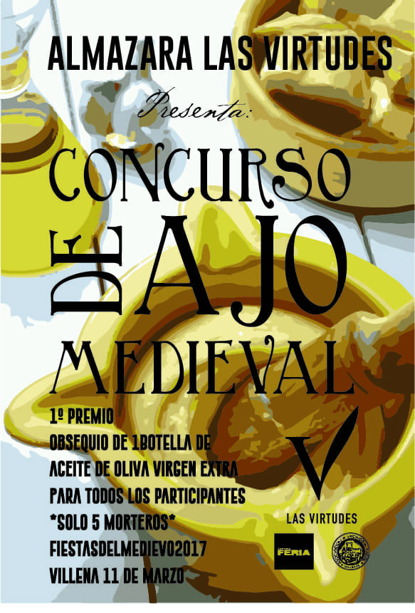 Bodega Las Virtudes organiza el I Concurso Gachamiguero Medieval el próximo sábado 11 de marzo de 2017. Por su parte Almazara Las Virtudes también patrocina el Concurso de Ajo Medieval.