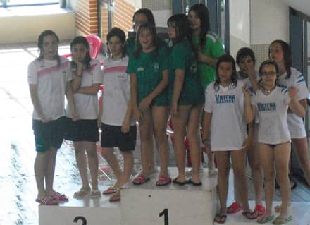 Por la tarde nuestro nadadores siguieron luchando por mejorar sus marcas, objetivo que se cumplió con la conquista de más mínimas para la fase autonómica (Paula Bernabeu Cabanes se unió a Silvia y Sofía) y de más medallas que unir a las obtenidas en la mañana.En la prueba de 100 libres femenino año 1998 se lograron los dos primeros puestos (Sofía Marí y Paula Bernabeu) y en los 100 metros libres femenino año 1999 la segunda plaza (Alba Olmos Iñiguez); a estas le siguió un nuevo podio en relevos en la prueba que cerraba la competición 4 x 100 estilos (Paula Bernabeu, Mª Eugenia Reig, Sofía Marí, Olimpia Esteban).