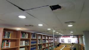 Cae parte de la escayola de la segunda planta de la Biblioteca Miguel Hernández