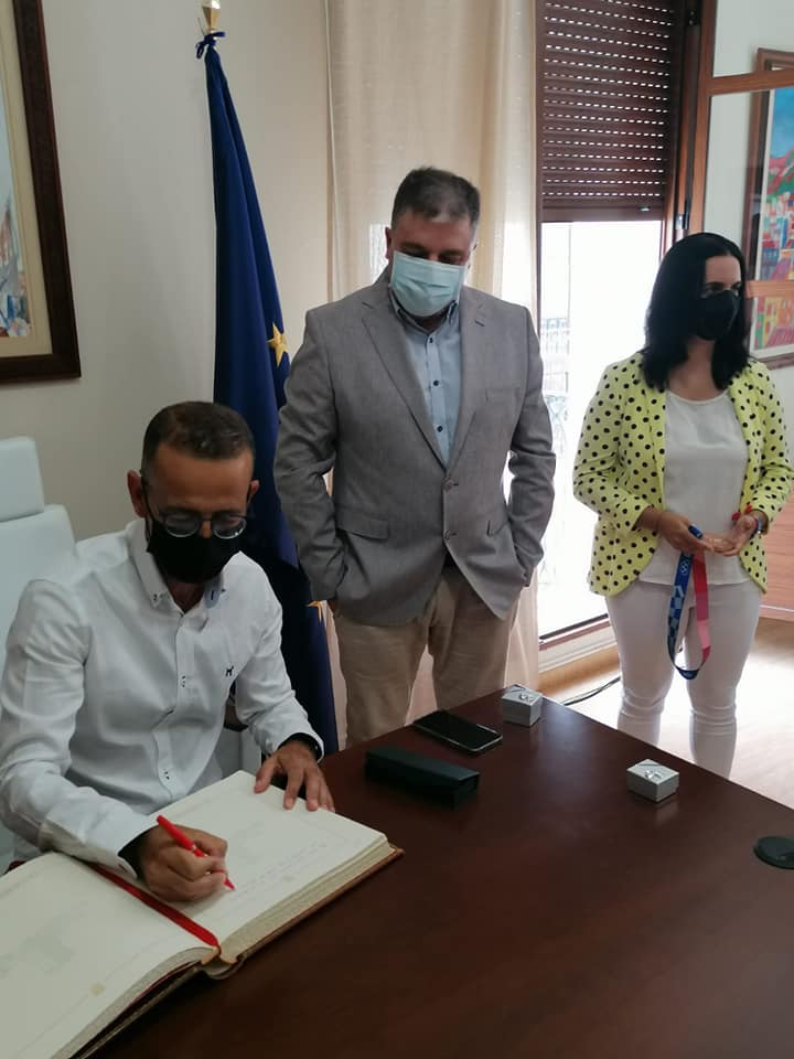 El medallista olímpico y su entrenado han firmado en el libro de honor de la ciudad
