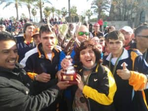 Después de comer tuvo lugar la clausura de la Jornada Deportiva con la presencia de un representante de la Diputación, el Alcalde de San Vicente y el Rector de la Universidad. Durante la clausura se entregan los premios al cartel ganador y la copa a la delegación ganadora de la Jornada, la que mayor número de medallas de oro haya conseguido. Este año fue para nosotros, para el Centro Ocupacional