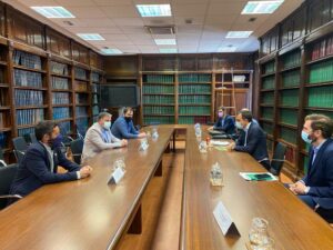 El alcalde de Villena, Fulgencio Cerdán, ha viajado a Madrid para entrevistarse con el Secretario General de Infraestructuras, Sergio Vázquez, así como con responsables de ADIF para abordar la concreción del futuro acceso desde la autovía A-31 a la estación del AVE en Villena. Cerdán, que estuvo acompañado del primer teniente de alcalde, Francisco Iniesta, y del edil de Urbanismo, Javier Martínez, solicitó de los responsables del Ministerio de Transporte, Movilidad y Agenda Urbana la concreción de una planificación de la futura vía de conexión con la estación de alta velocidad.