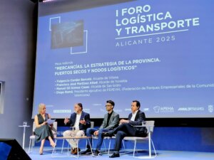 Cerdán participó en la mesa ‘Mercancías. La estrategia de la provincia, Puertos Secos y Nodos Logísticos’, junto a su homólogo de Novelda, José Francisco Martínez; y Diego Romá, presidente de la Federación Provincial de Polígonos Industriales de la Comunidad Valenciana (FEPEVAL).