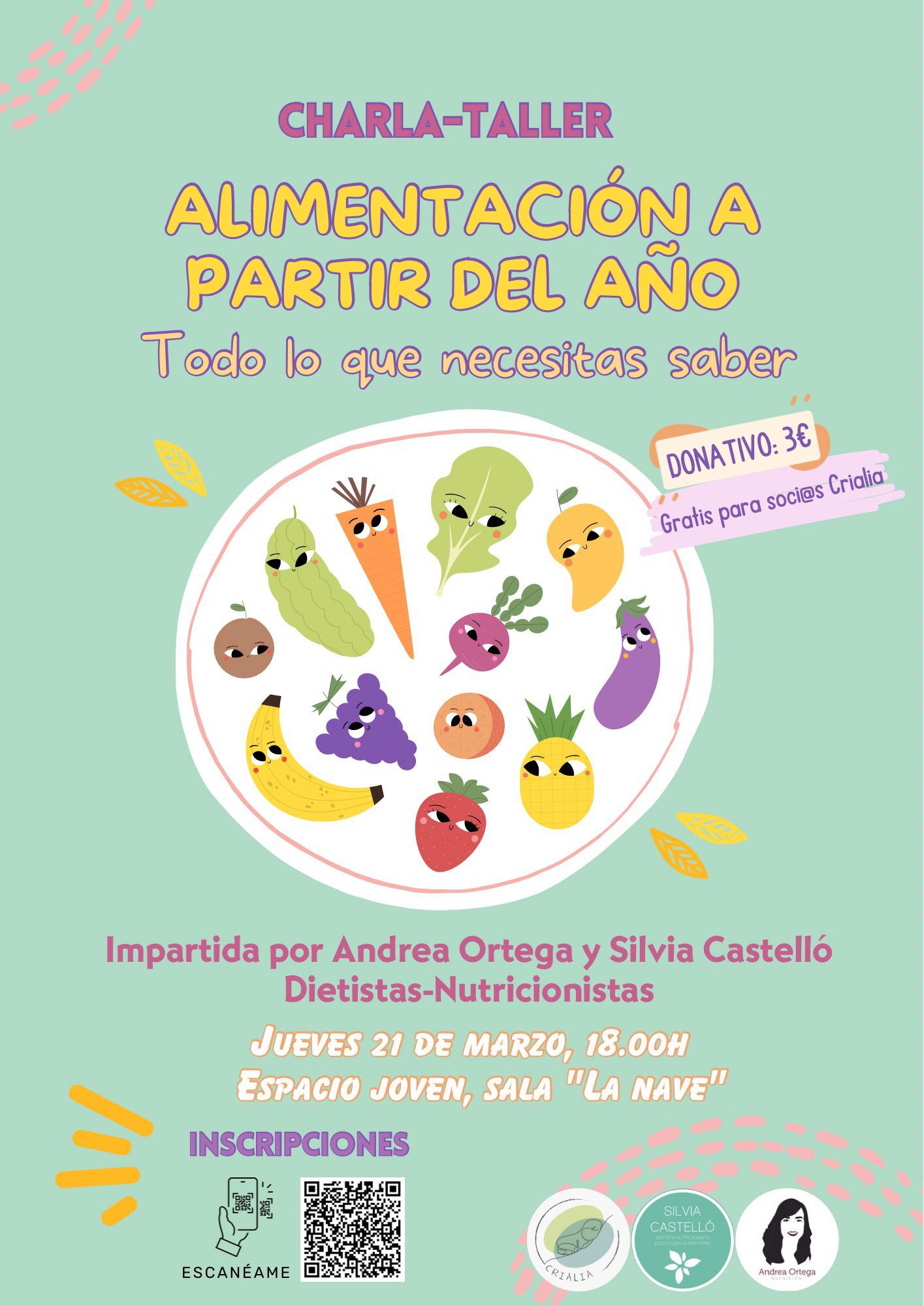 Para el mes de marzo la asociación Crialia ha organizado la charla-taller “Alimentación a partir del año: todo lo que necesitas saber”, que tendrá lugar el próximo jueves 21 de marzo a las 18:00h en el Espacio Joven.