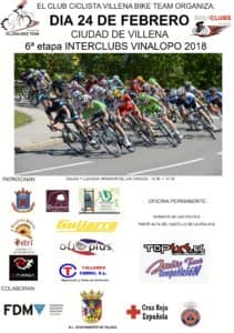 El próximo sábado 24 de febrero a partir de las 15:30 horas y con la organización del club ciclista Villena Bike Team, se celebrará la 6ª etapa de la Interclubs Vinalopó, prueba ciclista de carretera que este año cumple su 10º edición.