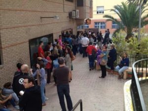 Ayer tarde se pusieron a la venta las primeras 175 entradas a las 17h en el estanco El Portón. Desde la 14:30h había gente esperando para conseguir una entrada, llegando más tarde una gran cola para hacerse con una de las entradas.