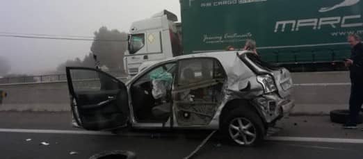La densa niebla de esta mañana ha podido ser la causa de la colisión de cuatro vehículos en la A-31 dirección Alicante- Madrid, a la altura de Villena y en el que han resultado heridas dos personas por diversas contusiones.