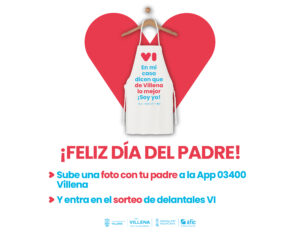 Los padres son los protagonistas de la acción, que se inicia el 9 de marzo en la aplicación de telefonía móvil 03400 Villena. Los participantes deberán enviar una foto junto a su padre y contar qué es lo mejor de él. Entre todas las personas que participan, el 16 de marzo, se sortearán delantales VI.