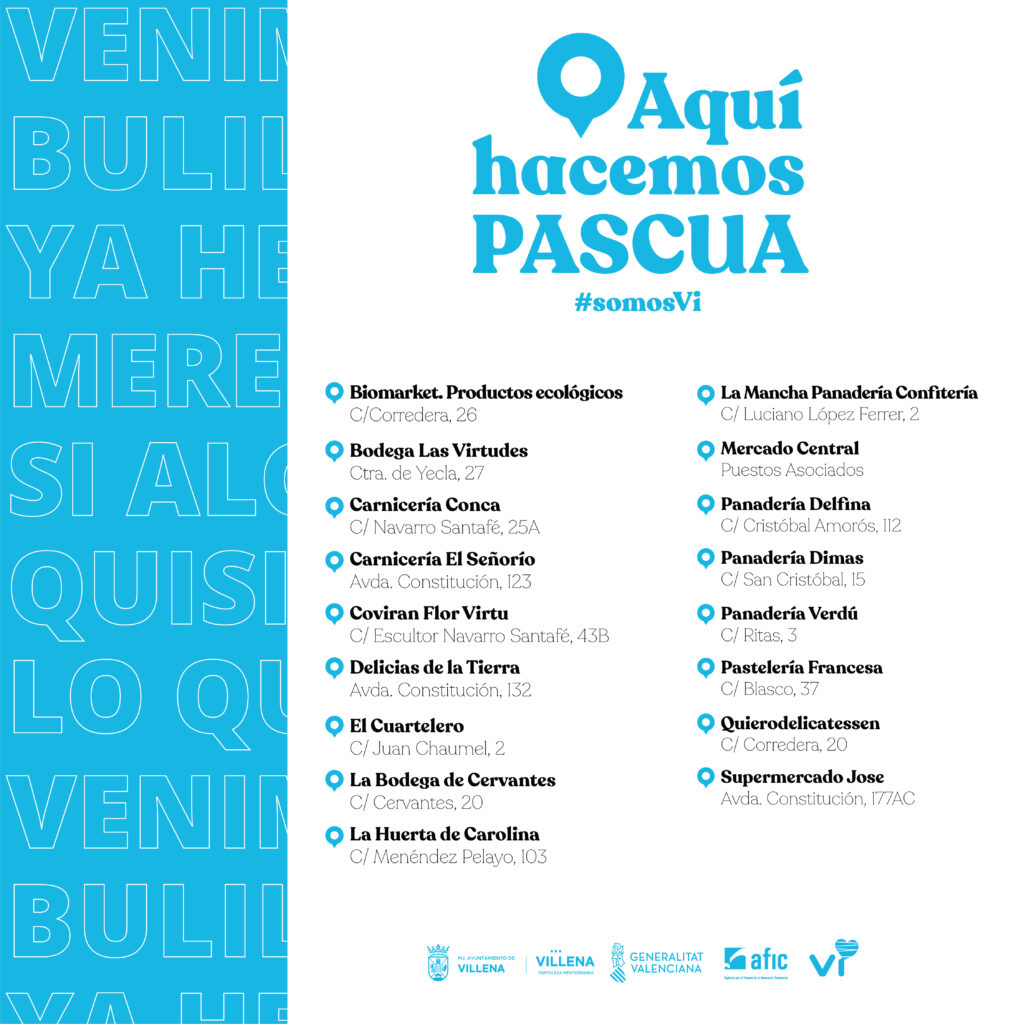 La campaña, que lleva por nombre “Aquí hacemos Pascua” #somosVi”, se inicia el próximo 30 de marzo y se mantendrá hasta el 10 de abril. Durante estos días, por compras superiores a 10 euros en 33 comercios identificados con vinilos podrán entrar el sorteo de dos cestas.