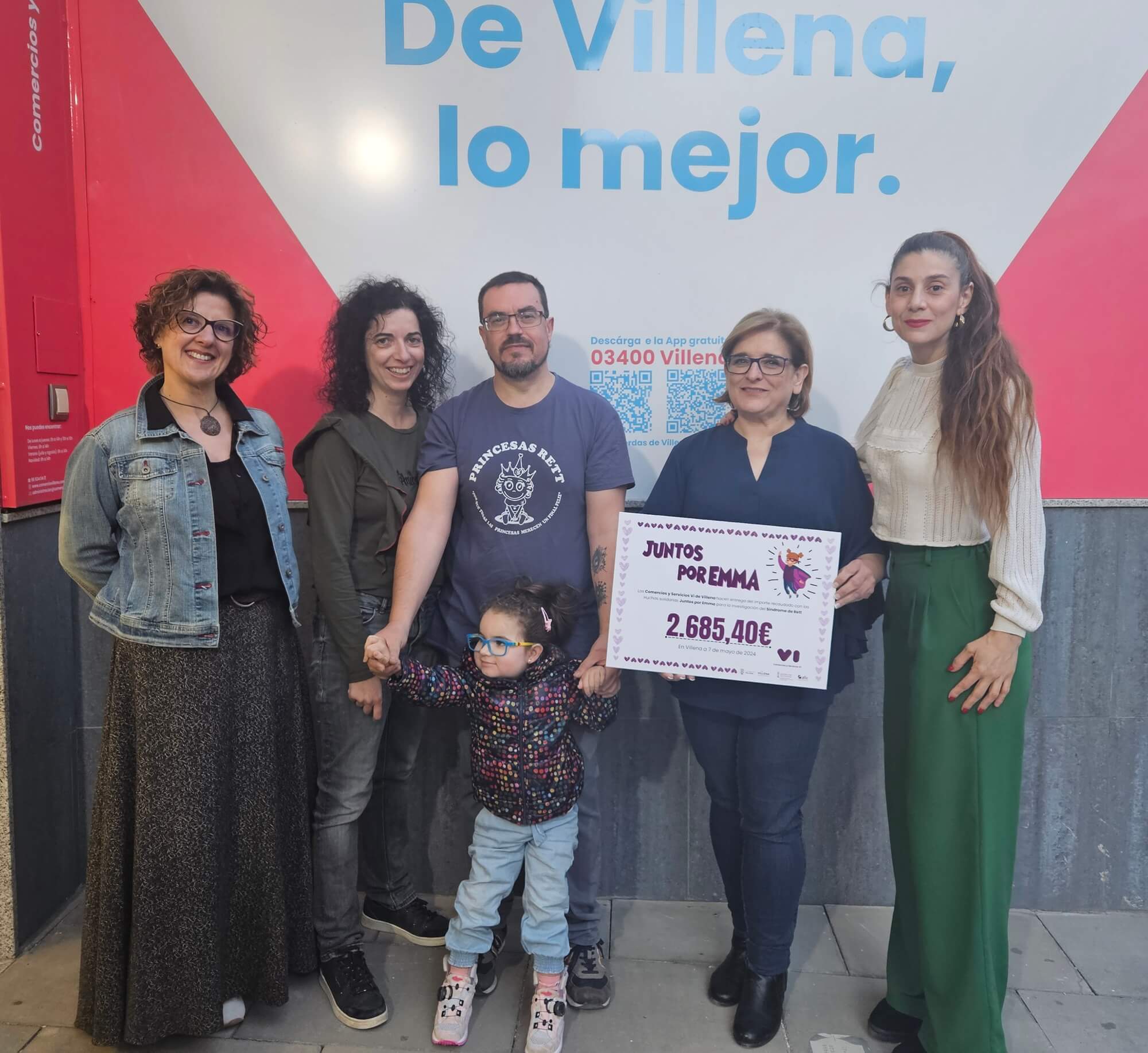 La iniciativa solidaria “Juntos por Emma”, organizada por Comercios y Servicios Vi ha recaudado un total de 2.685,40 euros destinados a la investigación del síndrome de Rett. Desde el pasado 10 de noviembre hasta el 15 de febrero. 87 establecimientos Vi y 22 puestos del mercado de Villena se sumaron a esta causa, colocando huchas para recolectar donativos.