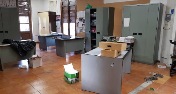 El equipo de gobierno de Los Verdes ha dado la orden de iniciar el desalojo de la primera planta del Ayuntamiento de Villena, donde estaba el departamento de Secretaria, los despachos de los grupos políticos- Los Verdes, Partido Popular y PSOE- así como Alcaldía.