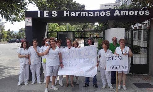 Los trabajadores del servicio de limpieza de los Institutos de Secundaria de Villena, Sax, Banyeres de Mariola o Biar, así como otros edificios públicos dependientes de la Generalitat han comenzado una huelga indefinida por el incumplimiento de la empresa a la hora de pagar en fecha.