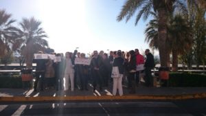 En el día de hoy 3 de diciembre el personal de limpieza de el departamento de Elda,( hospital, centros de salud y centros de especialidades) nos hemos concentrado en la entrada principal del hospital de Elda ,para reclamar a la empresa ISS que actualmente tiene la concesión de del departamento: