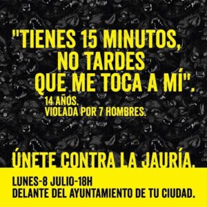 Por este motivo, una vez más, y sólo 15 días después de que el Tribunal Supremo rectificara la sentencia de la Manada de Pamplona absolutamente injusta por el mismo motivo, habrá concentraciones ante los ayuntamientos de todo el país y también en el de Villena. Desde la concejalía de Igualdad en Villena se quiere actuar como órgano de participación y voz de las mujeres de la ciudad por lo que se invita a toda la ciudadanía a unirse a esta protesta frente a una sentencia injusta.