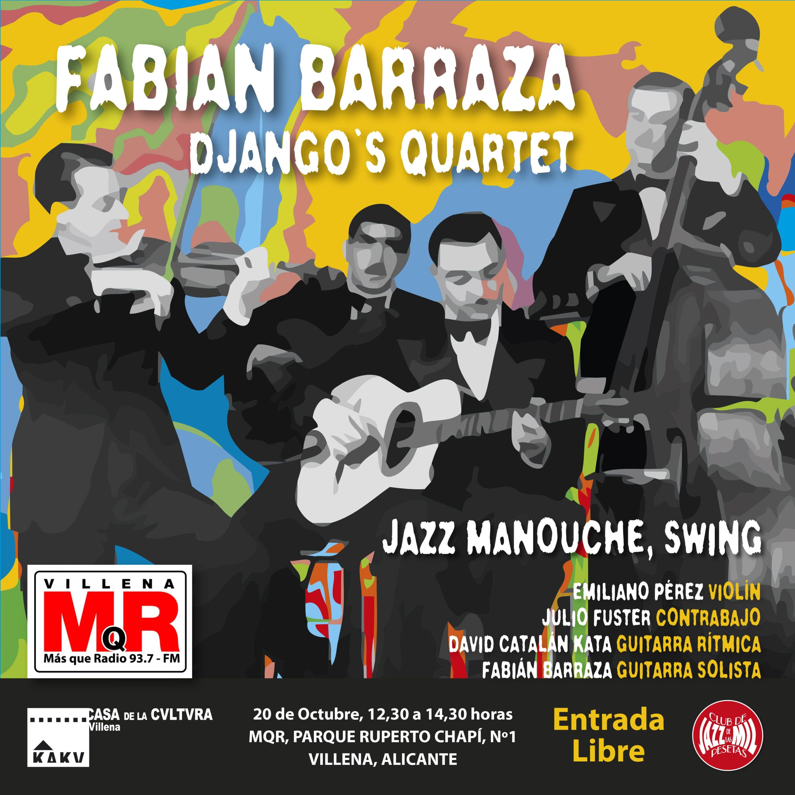 Fabian Barraza Dajngo ́s Quartet es una formación de Jazz Manouche consolidada dentro del panorama Jazzistico español, ha actuado en diversos Festivales de Jazz nacionales como el festival de jazz manouche L ́H de Barcelona , Festival de Jazz de Peñiscola y en diversos conciertos en auditorios dentro del territorionacional. Practica un estilo denominado jazzmanouche también conocido comogipsy jazz(jazz gitano). Esta vertiente jazzística, que bebe más de la tradición musical centroeuropa que de los padrinos estadounidenses del género, tiene en la figura de Django Reinhardt a uno de sus principales exponentes. El guitarrista belga unió la herencia rítmica y melódica del Viejo Continente con el espíritulibre y dado a la improvisación del jazz Americano. Así, tradicional pero dúctil y trepidantemente fresca, es la música que ofrece Fabian Barraza al frente de su cuarteto.