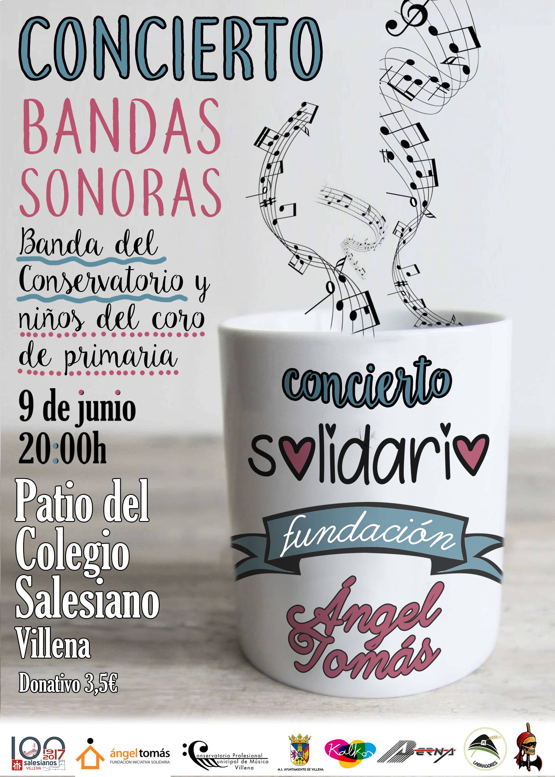 Enmarcado dentro de los actos del Centenario de la Casa Salesiana de Villena, y coincidiendo con el X aniversario de la muerte del salesiano villenense D. Ángel Tomás García, quien dedicó toda su vida a ayudar a los jóvenes más desfavorecidos, se ha organizado un concierto de bandas sonoras que será protagonizado por el grupo de los viernes de la Banda del Conservatorio, acompañada por diferentes coros de primaria y un grupo de bailarines de infantil.