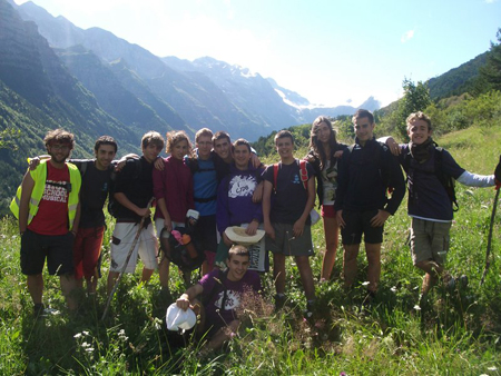 Con buen humor y esfuerzo continua la aventura transpirenaica del Centro Juvenil Don Bosco. El martes alcanzaron el refugio de Goriz, donde plantaron sus tiendas y tuvieron que abrigarse para soportar las bajas temperaturas y la AGUANIEVE que hizo su aparición por la noche. Un buen desayuno con las vistas maravillosas del valle de Ordesa ayudó para iniciar la travesía por el circo glaciar, la cascada de Cola de Caballo, las gradas de la pradera y, por fin, TORLA, tras nueve horas de camino, el esperado descanso en el camping Río Ara.