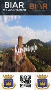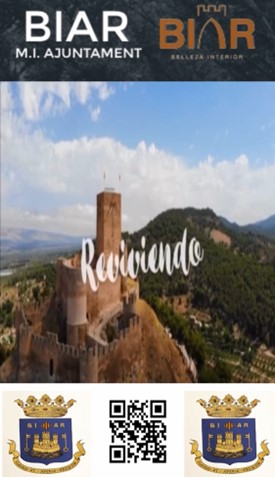 Además de las imágenes y los lemas turísticos, también se puede visualizar el logotipo del Ayuntamiento de la localidad, su escudo y un código QR que redirige a la página www.biar.es desde la que se puede consultar toda la información local.