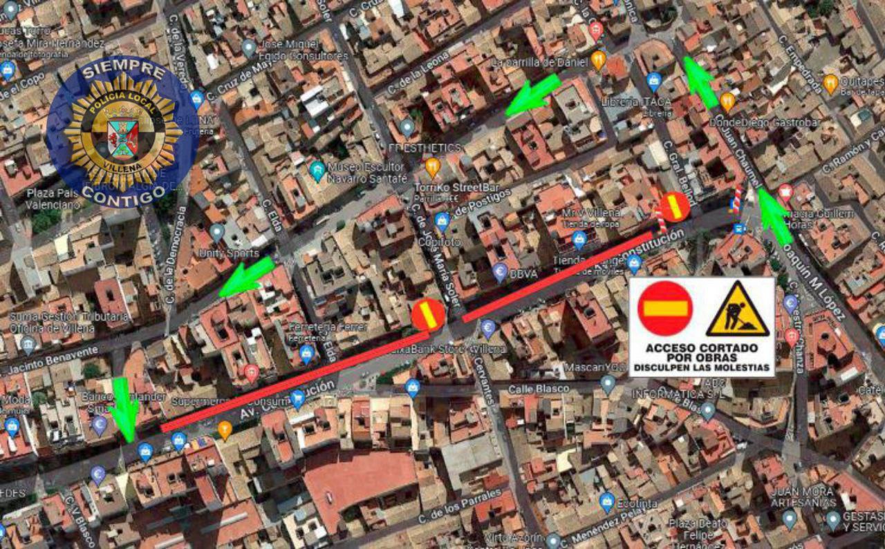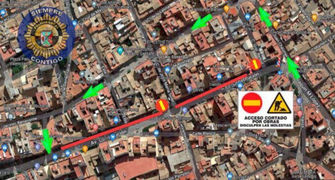 Temporalmente quedará cortado el acceso a calle José María Soler desde Avenida de la Constitución.