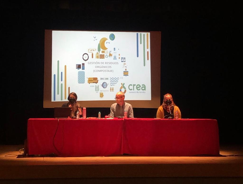 Hasta la Casa de Cultura se desplazaron personal técnico de la Concejalía, el equipo de educación ambiental de Ayuntamiento y del Consorcio Crea, así como técnico de formación de la empresa adjudicataria del contrato de implantación del compostaje comunitario y domiciliario que gestiona directamente el propio Consorcio.
