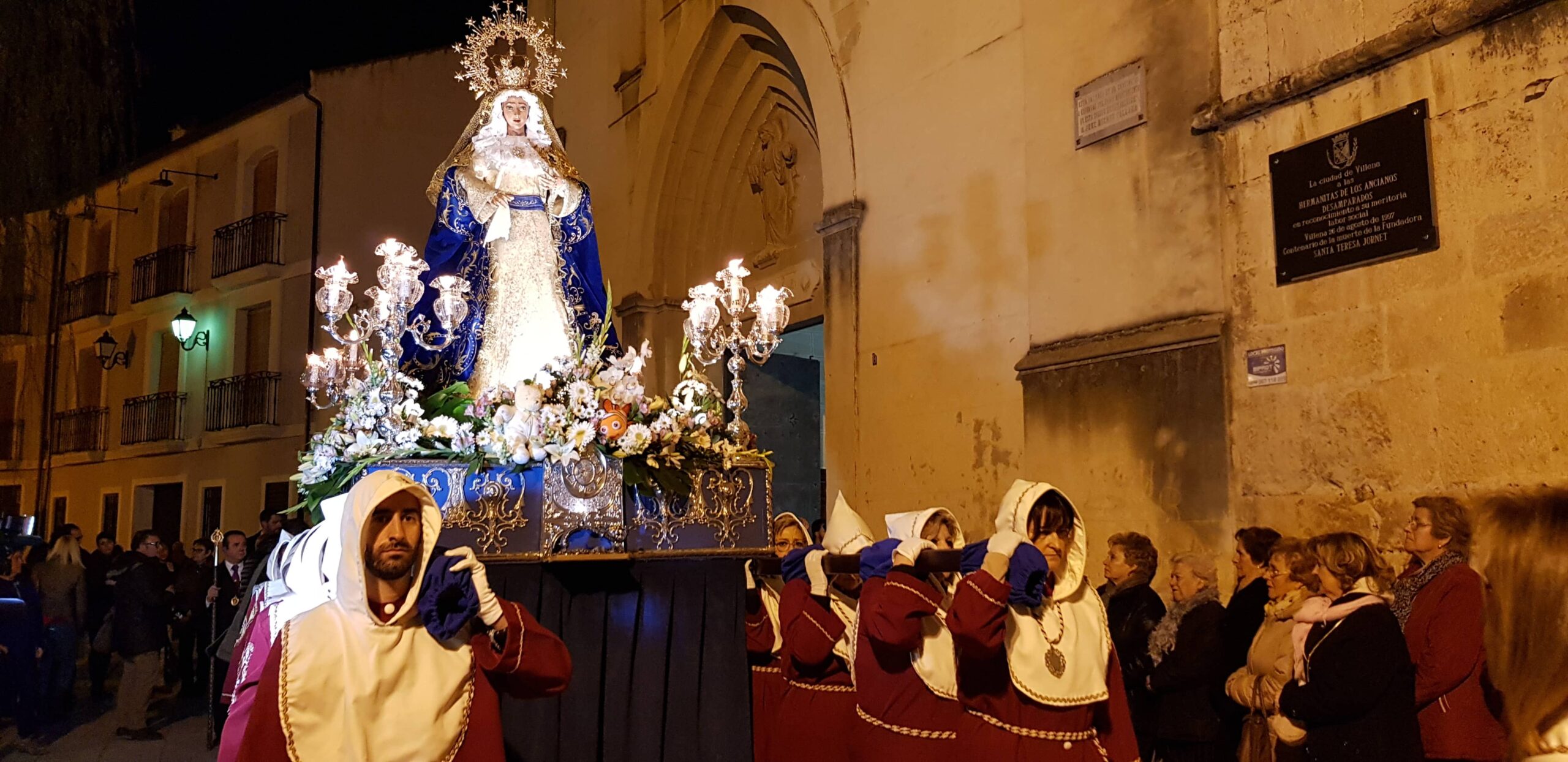 A las nueve de la noche la puerta de la capilla del Asilo de las Hermanas de Ancianos Desamparados se abrió, tras el toque de la campana, con el que se inició el paseo anual de las dos tallas .