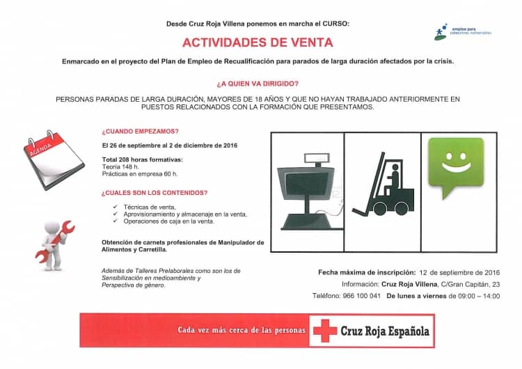 El próximo día 26 de septiembre dará comienzo el curso de recualificación profesional para personas paradas de larga duración sin experiencia en el sector de la atención al cliente y gestión de almacén, denominado “Actividades de Venta” con una duración de 208 horas teóricas y 60 prácticas con módulos complementarios de perspectiva de género, y sensibilización en medioambiente.