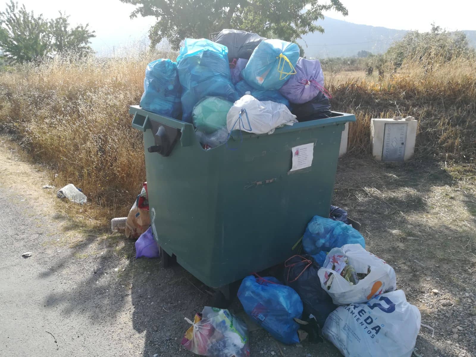 La conclusión es evidente, algo tienen que no nos quieren contar, pero al final la basura desborda y se hace patente la falta de servicio en las imágenes tomadas esta mañana y mostradas junto a la noticia. Por tanto rogamos a la Concejala de Obras y Servicios que tome las medidas oportunas y que con urgencia se recoja también la basura del extrarradio.