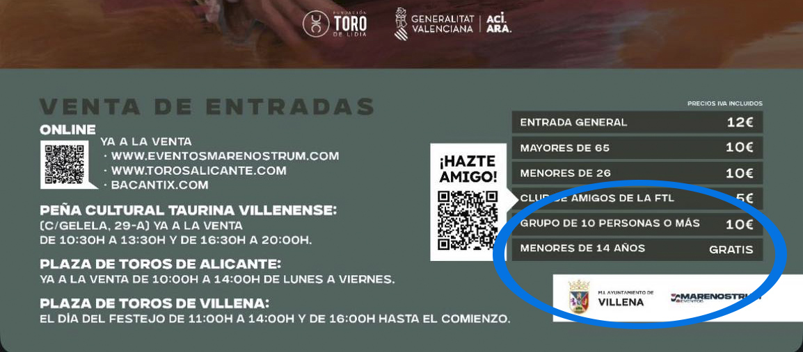 Denuncian la existencia de entradas gratis a menores de 14 para la novillada en Villena