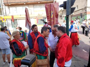 En la tribuna, también se encontraba viendo las fiestas el presidente de la Diputación Provincial, el benidormí Toni Francés quien ha participado en las fiestas de Villena como música en anteriores ediciones. “Conocemos las fiestas de Villena en dos vertientes, como ciudadano normal y como músico. Los primero compases son muy emociones. La emoción se palpaba”, ha manifestado. Asimismo ha desado unas muy buenas fiestas a todos los villeneros y a toda la comarca que vienen a vistarlos.