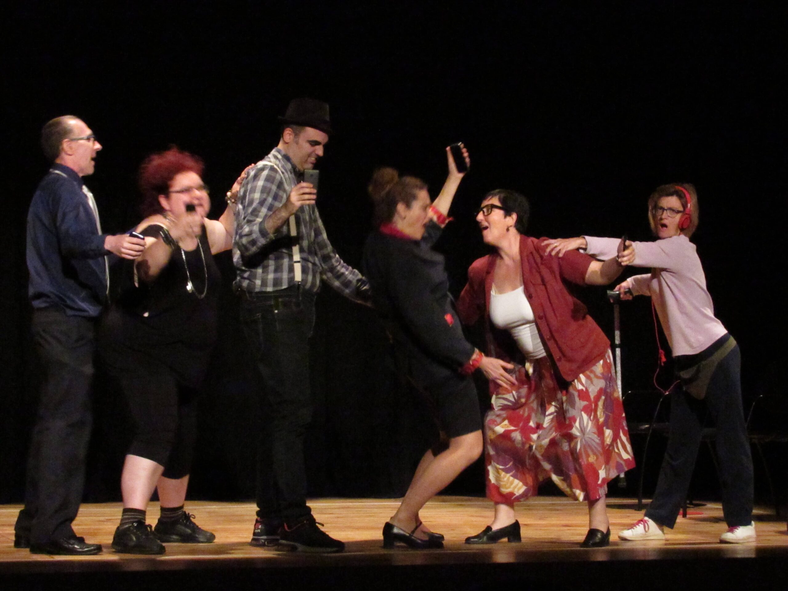 Ayer nos visitaron muchos tesoros, pero especialmente Chelo, Rafa, Silvia, Aurelia, Fede, Paloma, Domingo y Ana. Ellos son el equipo técnico y artístico de La Locomotora que ponía en escena la obra “Perversión” en la Casa de la Cultura de Villena. Casa a la queremos dar las gracias por su implicación y apoyo en nuestras actividades. A las 18:00 horas arrancaba el espectáculo con un equipo de actores y actrices entregados a una historia bañada por el bolero de Ravel que les acompañaba para mostrarnos escena tras escena que el ser humano a veces es débil, perverso, avaricioso. Un trabajo perfectamente coreografiado y con un lenguaje teatral moderno, rítmico y potente. Con actrices y actores que junto a Ana Campos (directora de la compañía) dejan constancia de cuando la pasión por el teatro es mucho más fuerte que aspectos tan livianos como nuestras formas, nuestras ideas, nuestras capacidades o nuestras discapacidades. Un placer que se crucen en el camino tesoros como éstos.