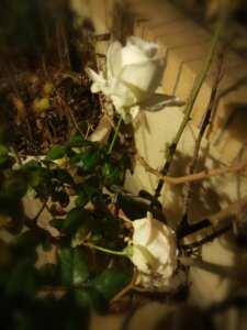 Iguales a las dos rosas blancas que anoche encontré en el rosal de casa. El termómetro marcaba 4 º C y seguramente estábamos todavía a menos grados, y allí estaban. No salieron de la nada; posiblemente florecieran días antes y no las ví. Seguramente existen estos rosales que dan flores todo el año. Seguramente no fue una señal, simplemente las había ignorado, hasta ayer. Seguramente. Pero las corté, antes de que se marchitaran y las dejé reposar junto a tu fotografía. No era necesario pero lo hice porque te recordé, más que hace meses, más que hace un año. Te recordé. Sonrisa luminosa, inquebrantable fortaleza y generosidad infinita. No estás aunque sigues viva en los recuerdos, en los gestos de los tuyos. Y no, no estás en aquellas ruinas donde te abandonó. Estás “en casa”. Quédate.
