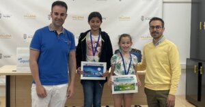 El concejal de Ciclo Hídrico, Sergio Palao, y el responsable de Aqualia en Villena, Gabriel Morales, han entregado los premios a las finalistas del Concurso Digital Infantil 2023, que se convocó bajo el tema “Aqual y ODS6, Aquaventura con la Pandilla Sostenible”, en torno al site www.aqualiayods6.com.
