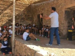 De esta forma el alumnado conoce algunos conceptos como la evolución de la tecnología durante la Prehistoria, cómo se vestían estos grupos humanos, qué es lo que comían o cómo obtenían fuego, utilizando para ello reproducciones arqueológicas: propulsores, arcos, hachas, molinos, etc. El objetivo ha sido dar a conocer cómo era la vida de nuestros antepasados de una forma amena, sencilla y entretenida.