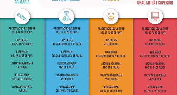 ? Presentació de solicitudes para la ESO, Bachillerato y FP: del 17 al 25 de junio