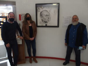 La concejala de Bibliotecas, Eva García y el director de Biblioteca y Archivo, Paco G. Cebrián han recibido al artista Pedro Marco en la Biblioteca Miguel Hernández para la donación de una obra realizada con grafito sobre el poeta oriolano titulada ‘Ombligos de patata’. “Es un gran honor que Pedro nos haya donado este cuadro por lo que supone su obra y por el gran aprecio que le tengo como amante del arte que soy”, ha señalado la edil.