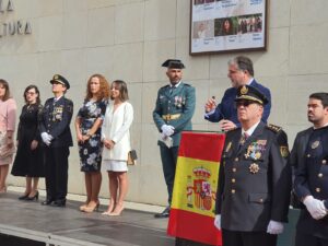 Villena celebró ayer el día la Fiesta Nacional de España, día de la Virgen del Pilar, patrona de la Guardia Civil, en un acto público celebrado en la Plaza de Santiago con un gran despliegue de agentes de la benemérita. En acto, se inició con una misa en la Iglesia en recuerdo de los agentes caídos en servicio y continuó con una parada militar compuesta por agentes de la Guardia Civil de la demarcación de Villena.