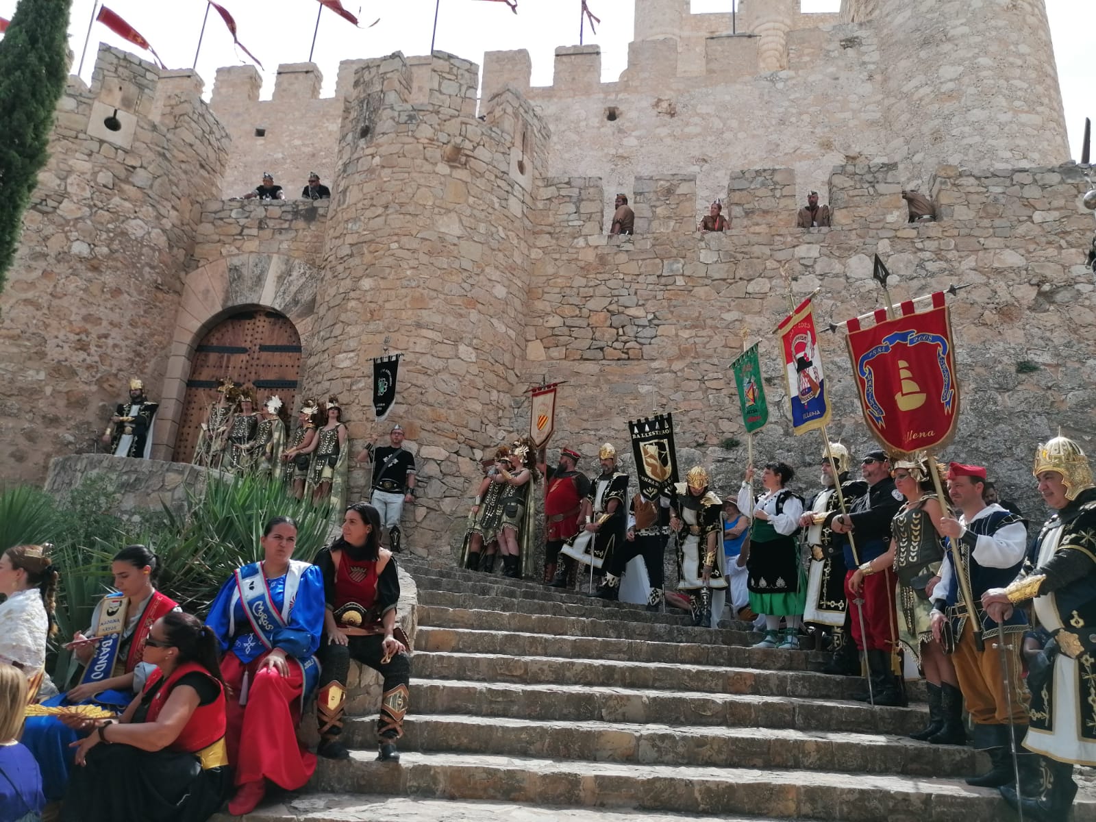 Con estos actos, que tuvieron lugar a mediodía de hoy, se ha continuado con la tradicional representación de la Embajada del Moro al Cristiano de las fiestas de Moros y Cristianos de Villena, una representación histórica y festiva del encuentro belicoso entre los ejércitos musulmanes y cristianos que tiene como escenario la majestuosidad del Castillo de Villena, una de las fortalezas más reconocidas y mejor conservadas de España que data del siglo XII, construido por los árabes en su paso por la península y catalogada como Bien de Interés Cultural (BIC).