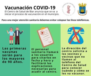 El Centro de Salud de Biar anuncia que se va  a iniciar el proceso de vacunación en el municipio.