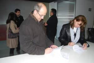 El alcalde de Villena, Francisco Javier Esquembre Menor,  procedió a la firma de recepción de las obras del Centro Joven situado en la calle Bodegas, junto el concejal de Juventud, Pablo Martínez Catalán, y la representante de la Conselleria de Justicia y Bienestar Social, Amparo Benet García.