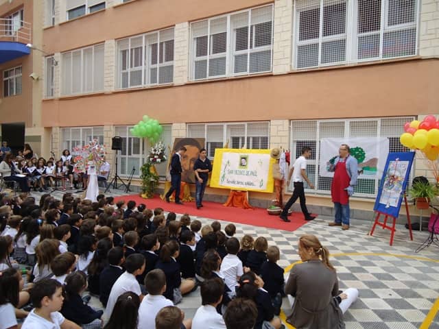 Los alumnos de Educación Infantil, con globos de colores, representaron los valores de San Vicente y querían ser deseos de amor para toda Villena. Estos globos se soltaron y sobrevolaron el colegio deseando lo mejor para todos.