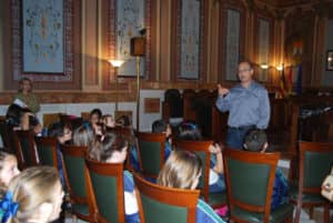 Al hilo de las actividades que desde los diferentes centros educativos se están realizando para que los alumnos y alumnas de Villena conozcan qué es un Ayuntamiento y cuál es el funcionamiento del mismo. El alcalde de Villena, Francisco Javier Esquembre, recibió, en el día de ayer, a los alumnos de 3º de Primaría del Colegio “La Encarnación” en el Salón de Plenos para que pudieran sugerirle o preguntar cualquier tema relacionado con el Ayuntamiento y su funcionamiento.