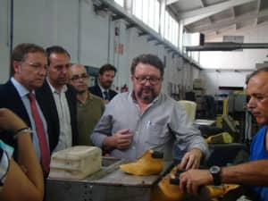 El conseller de Hacienda y Administraciones Públicas, Juan Carlos Moragues, visitó dos empresas de calzado infantil de Villena, Calzados Gulliver y Andanines, donde conoció minuciosamente el proceso de elaboración de un par de zapatos. Moragues mostró su sorpresa ante el alto componente de mano de obra y la gran especialización de los trabajadores.