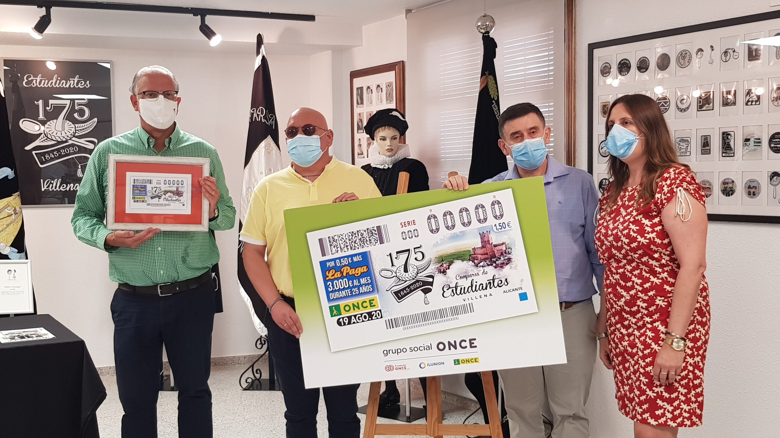 El cupón de la ONCE del próximo 19 de agosto conmemora el 175 aniversario de la comparsa de Estudiantes de Villena, fundada en 1845. Pese a que la pandemia por Covid-19 ha suspendido las celebraciones festeras de septiembre que se aplazan a 2021, la ONCE dedicará el cupón a esta efeméride. Es la primera vez que el cupón se dedica a la comparsa de Estudiantes.